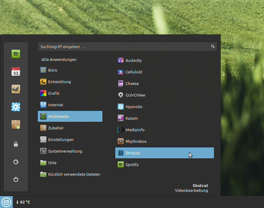 Nach dem ich das .destop-File gespeichert habe, erschien im Hauptmenü – in der Kategorie „Multimedia“ – mein klickbares ShotCut-Icon.