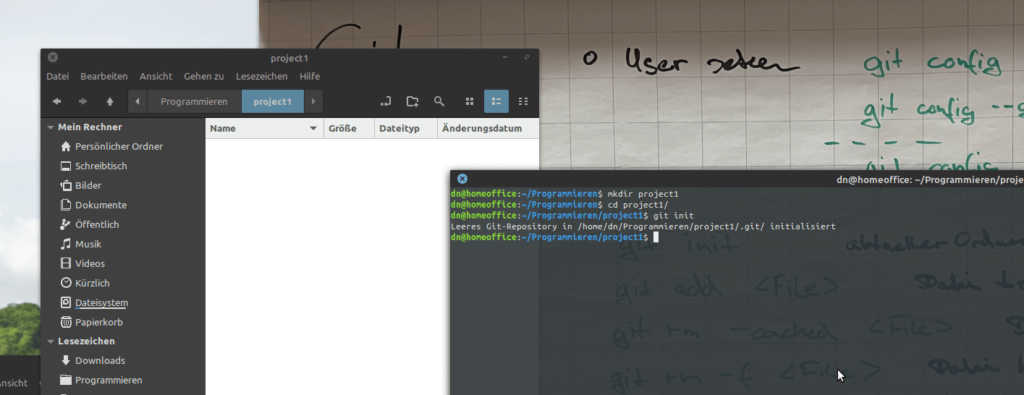 Um ein bereits bestehendes, lokales Projekt nachträglich als Git-Repository zu initialisieren, muss der ebenfalls nur das ‚git init‚-Kommando im Projektordner aufgerufen werden.