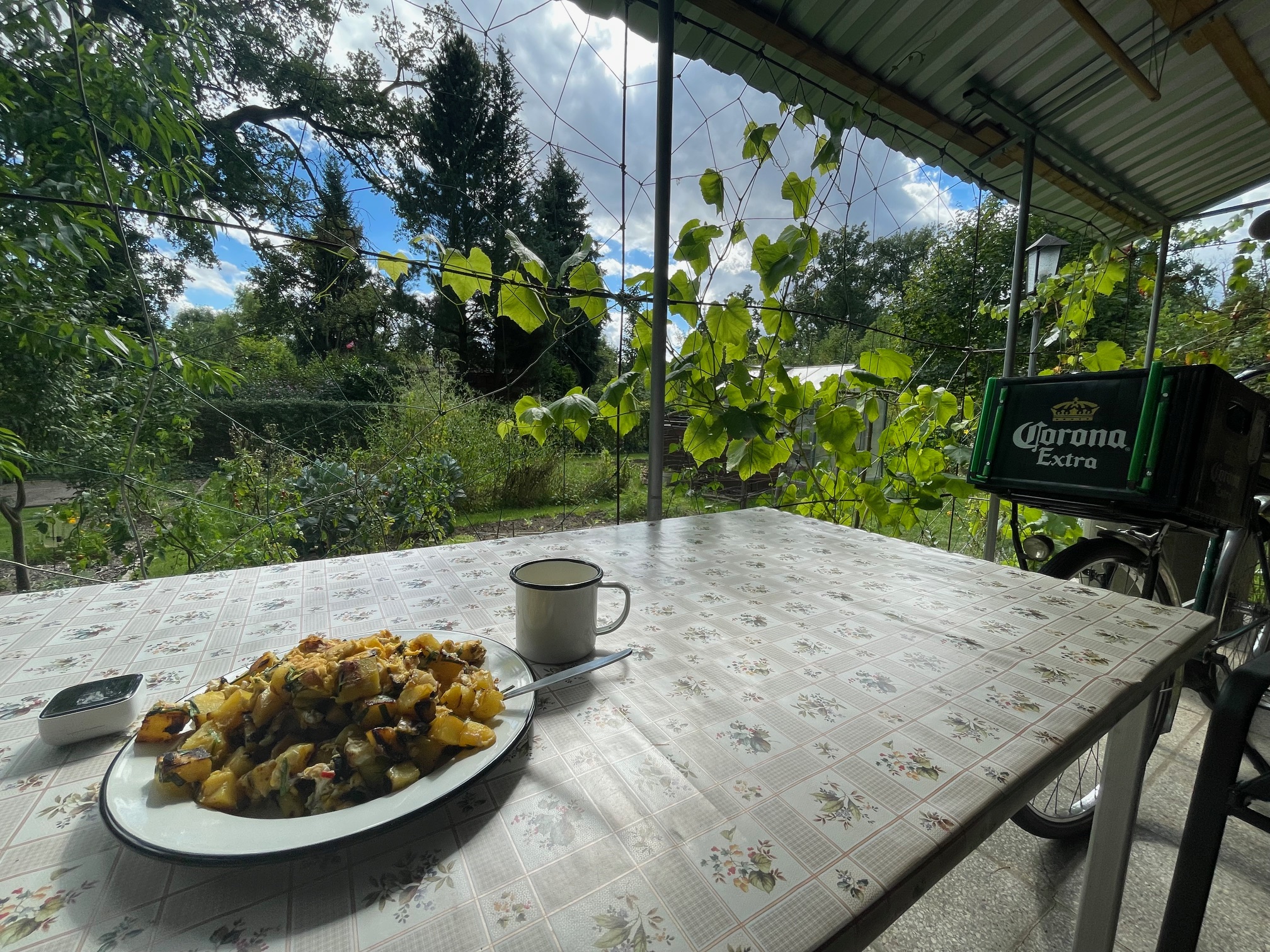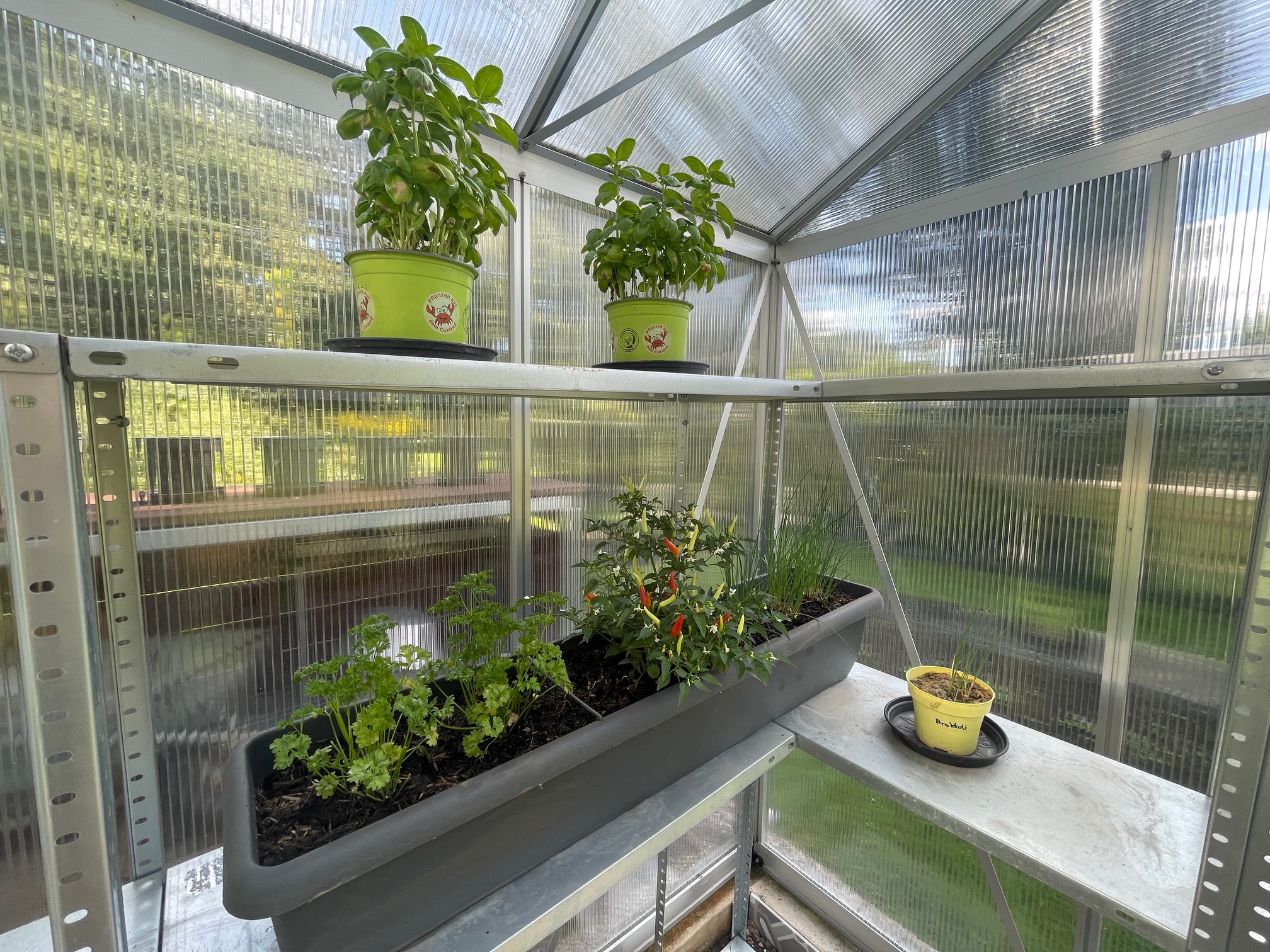 Ich probiere verschiedene Pflanzensorten, wobie Kartoffeln, Kletterbohnen und Kirschtomaten bisher am Besten wachsen.