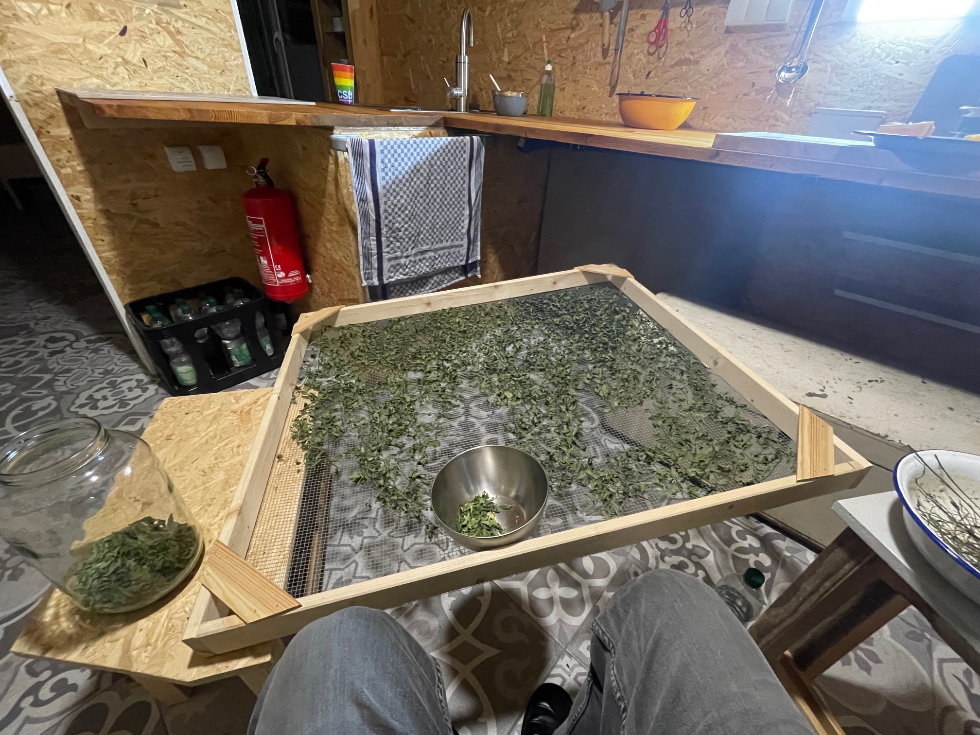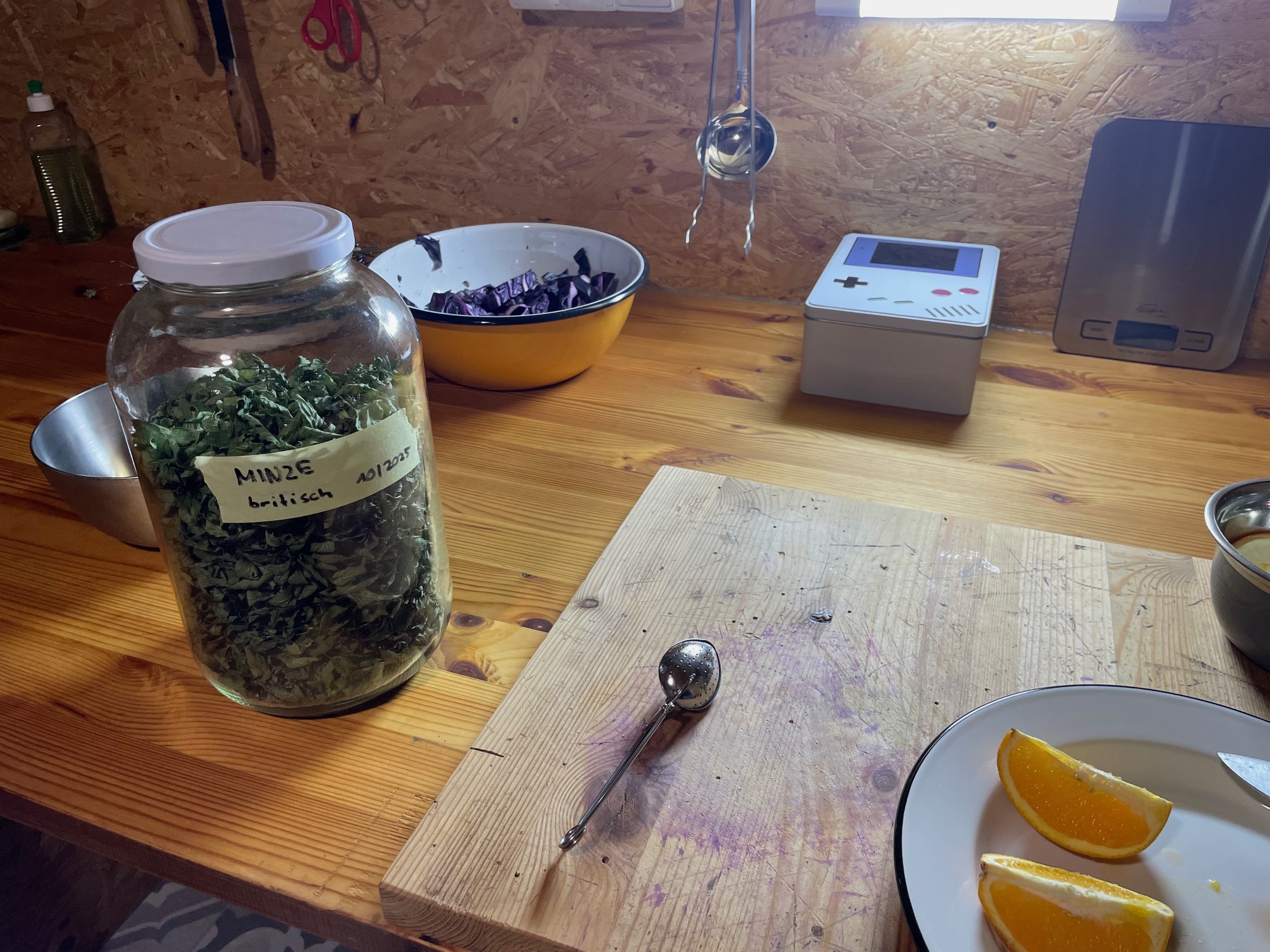 Ich habe mir ein großes Glas Pfefferminztee für den Winter getrocknet. Britische Minze. Riecht minzig und schmeckt minzig.