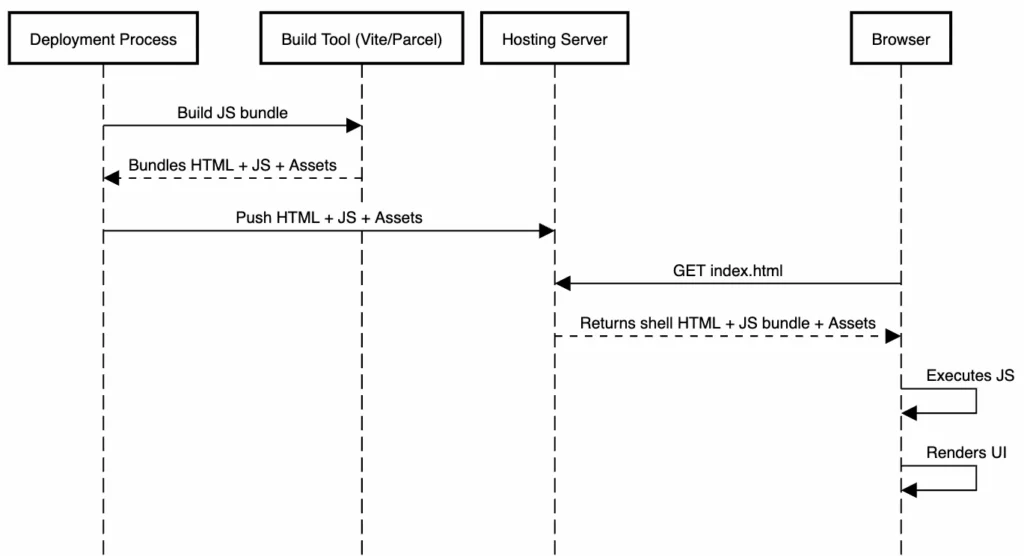 CSR wurde populär, als Verbrauchercomputer leistungsfähig genug waren und zuverlässige Internetverbindungen verfügbar wurden. Die Anwendung wird einmal gebaut, auf einem statischen Server bereitgestellt – und fertig.